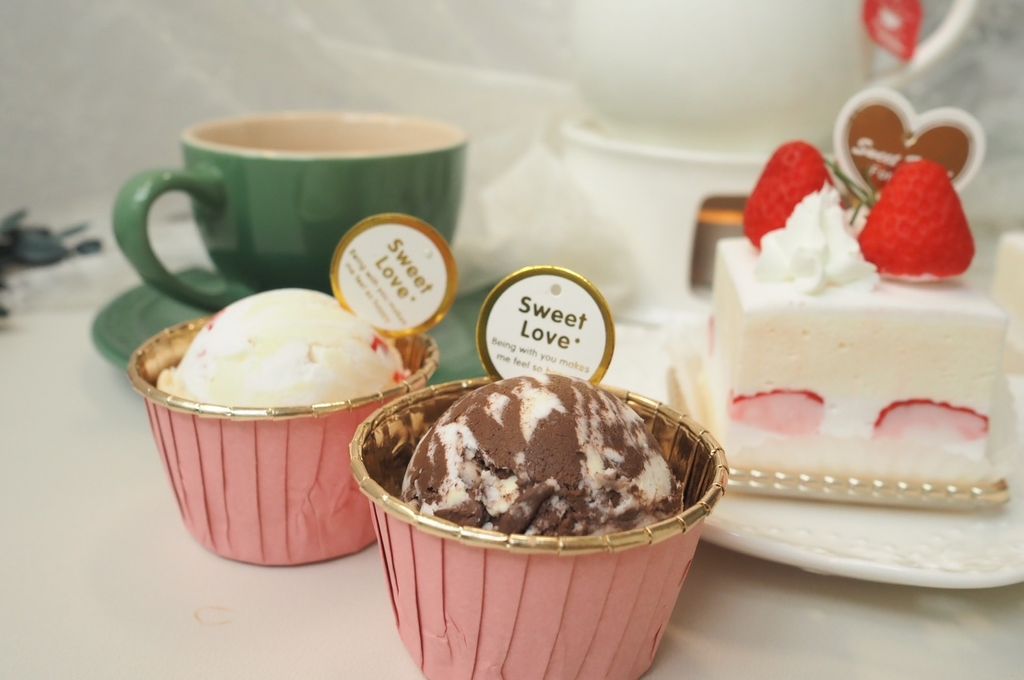2顆草莓海綿蛋糕 2球冰淇淋