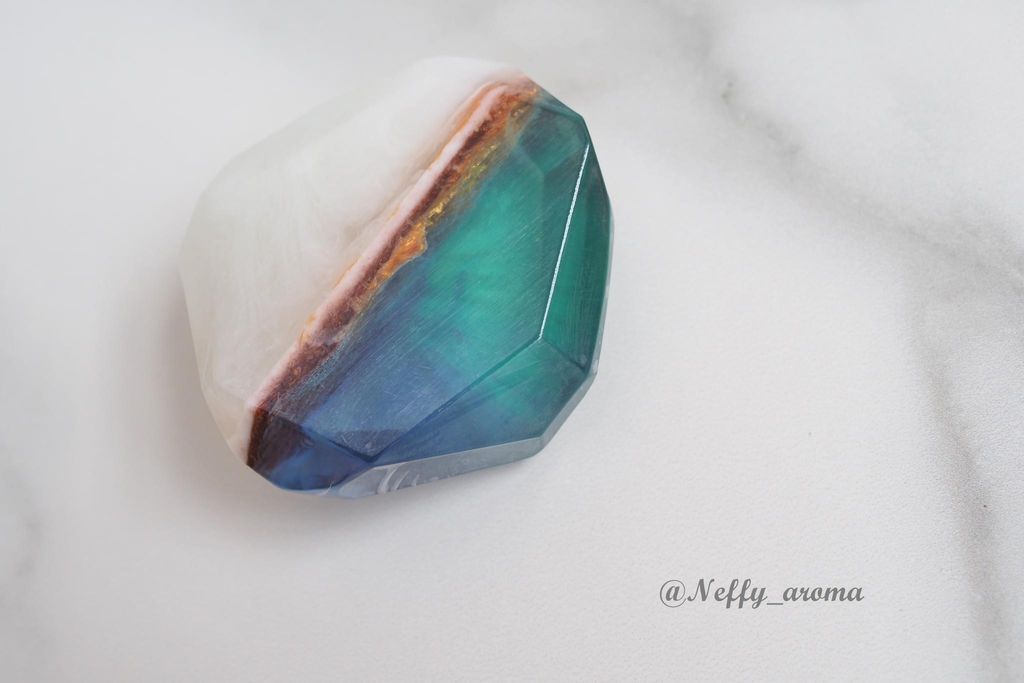 透過製作設計將香皂仿製成極光寶石均有其藝術與實用價值做為禮品與自用療癒都非常適合成分:甘油透明皂基/乳霜皂基/複方精油/皂用專業色液/雲母粉重量:70-90克/顆 依切割造型不同而有所差異適用:一般膚質清潔使用
